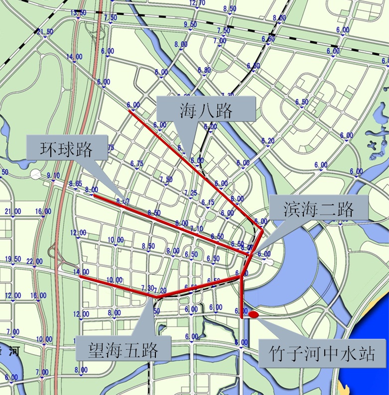 ⑴中国石化青岛炼油化工有限责任公司中水回用工程(中水处理规模4万m³/d,配套管网管径为DN600,长度4.5公里);⑵青岛炼化脱硫含盐废水尾水排放工程(泵站及配套管网,配套管网管径DN250,长度4.5公里);⑶镰湾河水质净化厂废水外排工程(泵站及配套管网,配套管网管径DN1200,长度16公里)。